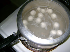 1.Boil milk,add lemon juice and stir well,slowly milk starts curdling as shown in the picture.
