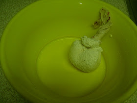 4.Now bring the cloth together,make a knot and remove excess water by twisting the cloth hardly with your hands,now the water will be gone,and paneer will be remained.
