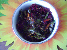 - Now place them in the blender along with garlic,turmeric and tamarind juice then blend to fine powder,then add the fried beets mixture and once again blend to a fine paste